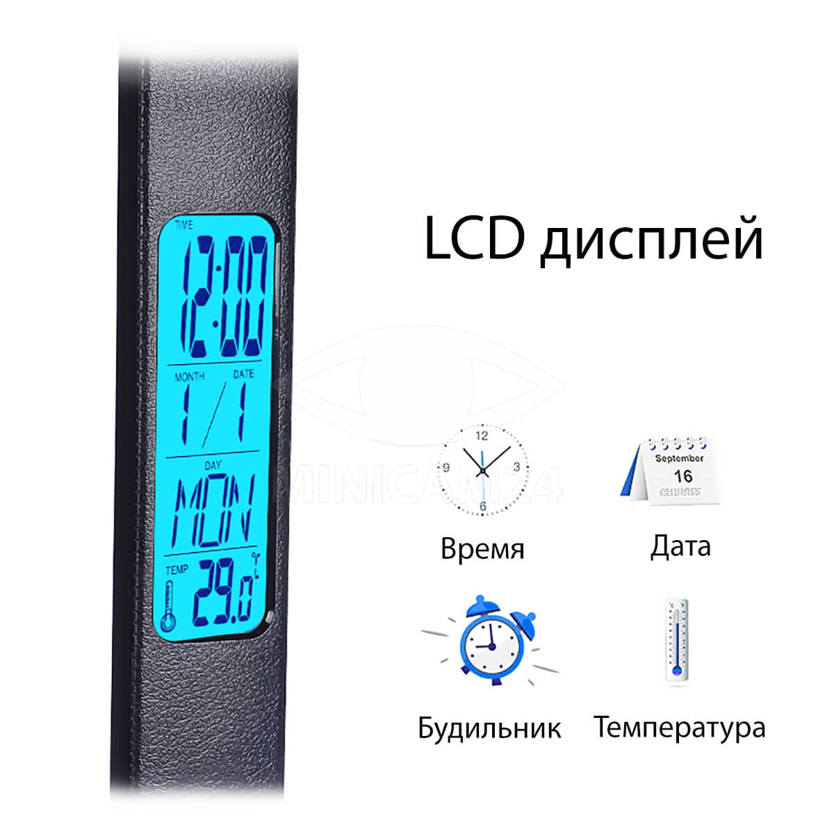 Благодаря функции беспроводной QI зарядки, вы можете заряжать совместимые телефоны прямо на поверхности лампы, что делает ее не только осветительным устройством, но и удобной зарядной станцией. С LCD дисплеем, отображающим время, месяц, дату и температуру, вы всегда будете в курсе текущих показателей.